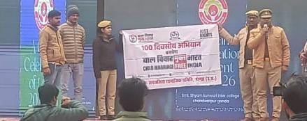 गोण्डा। शासन की मंशा के अनुरूप बाल विवाह की घटनाओं पर प्रभावी रोकथाम, समुदाय स्तर पर शून्य सहनशीलता का वातावरण विकसित करने, बाल विवाह प्रतिषेध अधिनियम सहित अन्य प्रासंगिक कानूनों के प्रभावी क्रियान्वयन तथा बालिकाओं एवं बालकों के संवैधानिक एवं कानूनी अधिकारों की पूर्ण सुरक्षा सुनिश्चित करने के उद्देश्य से दिनांक 27 नवम्बर 2025 से 08 मार्च 2026 (100 दिवसीय) तक संचालित “बाल विवाह मुक्त भारत अभियान” के अंतर्गत जन-जागरूकता कार्यक्रम आयोजित किया जा रहा है।